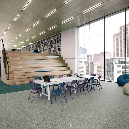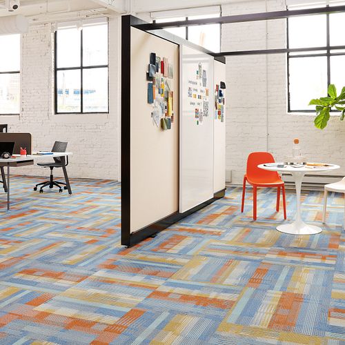 Shaw Contract’s No Rules mergeable dye lots make it easy to mix and match replacement tiles over time, without worrying about color matching.