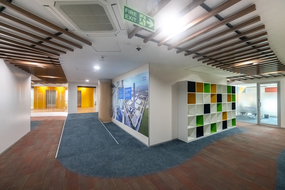 With 40% of the interior area being collaborative space, there would be a lot of human movement. The main feature the design team sought was sound reduction along with visual appeal and easy maintenance (ability to hold dust till vacuuming). With extensive support and expertise from Shaw Contract’s Pune office, the design team identified the exact range of tiles that met the rigorous requirements.