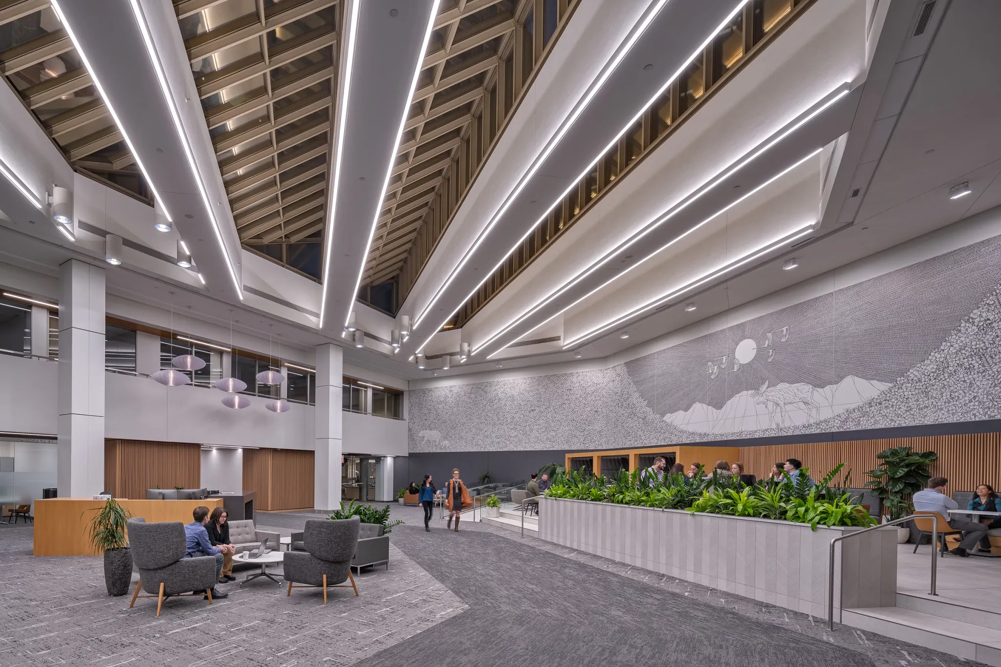 Design Firm OTJ Architects created and embraced this same vibrant sense of community by renovating a client’s 14,000 square foot workplace in response to the post-COVID-19 era.