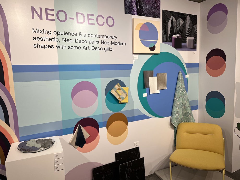 Stacy García presentó "Neo-Deco" como tendencia en su exhibición Trend Futures con i+s en NeoCon este año. García afirma que "Neo-Deco destaca un regreso al Art Deco con una combinación de líneas variadas, formas curvas y algo de brillo". Esta tendencia se alinea con nuestra tendencia de "Curvas" mencionada anteriormente.
