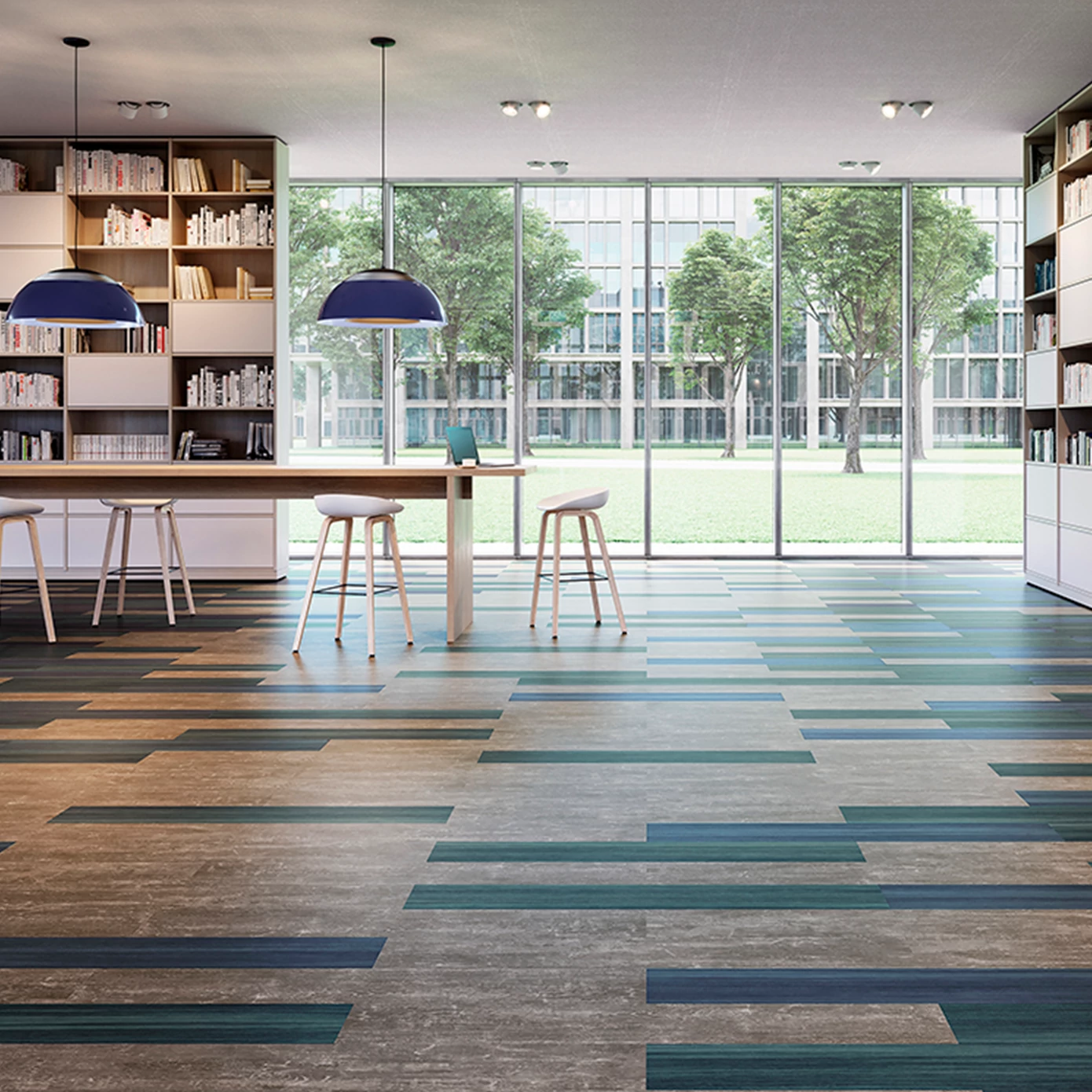 Cover + Envelop consiste em dois estilos, criados para atender a demanda por pisos vinílicos, que são uma solução eficaz e de alto desempenho para contrapisos irregulares. Oferecido na espessura de 4 mm, Cover + Envelop pode ser instalado lado a lado com carpete em placas sem acessórios de transição.